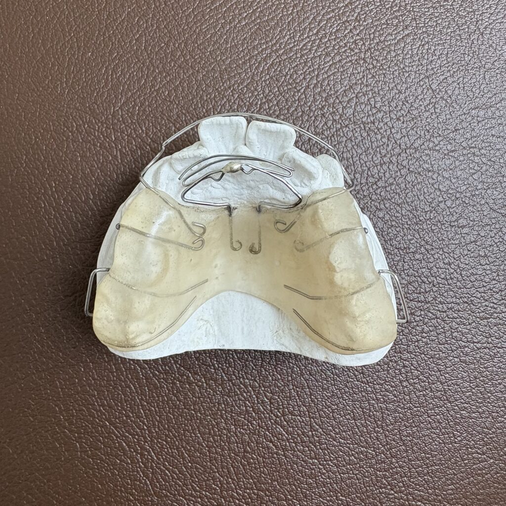 こちらは取り外しが可能なため、清掃性に優れ、虫歯リスクも低減できます。写真にあるように、ワイヤーと透明のレジン床の構造が歯を理想的な位置に誘導さることができます👏🏻
