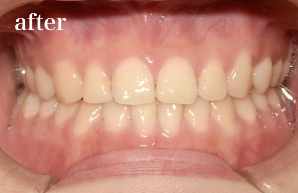 治療後は前歯も奥歯もしっかりと噛み合い、見た目も機能も大きく改善されています。