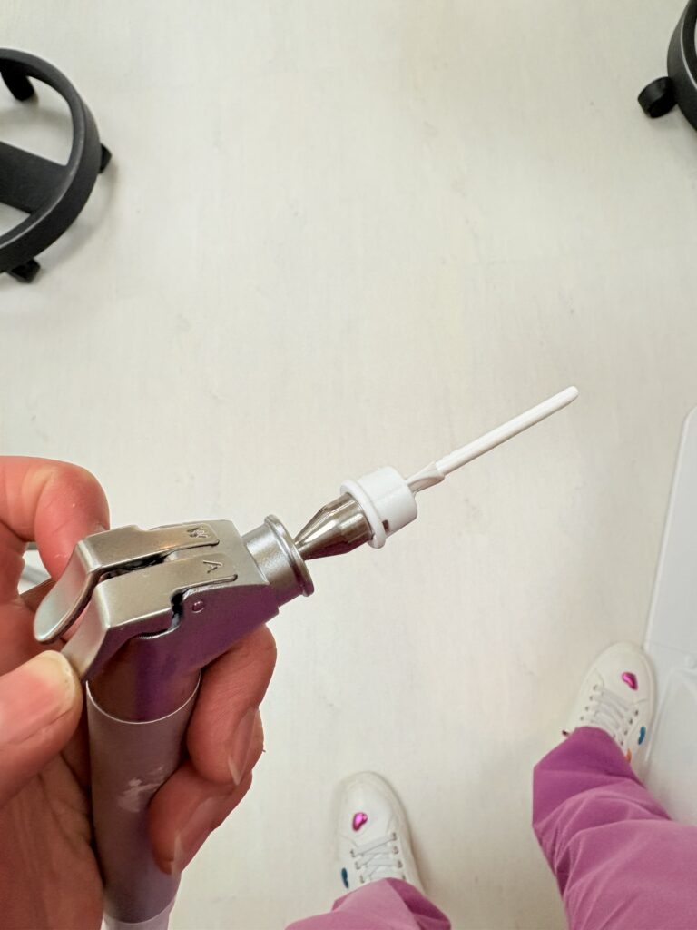 まず、診療中によく歯に風や水を吹きかける部分を、ディスポーザブル(使い捨て)タイプ に変更しました。
