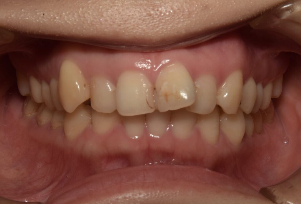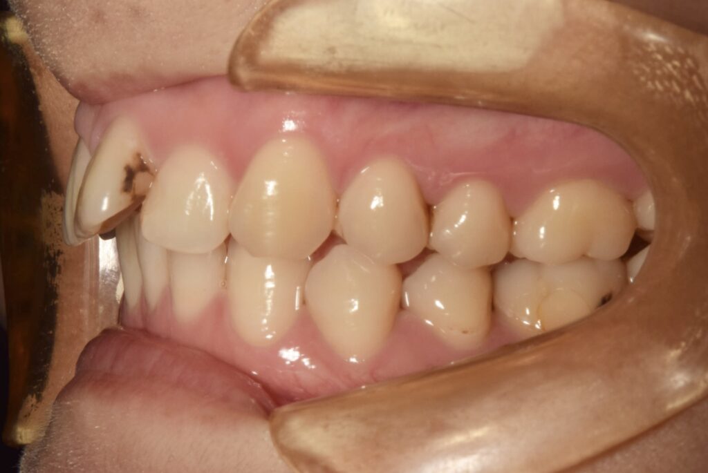 そのため、まずは補綴治療の前に矯正装置で噛み合わせを整えたいという主訴でした。