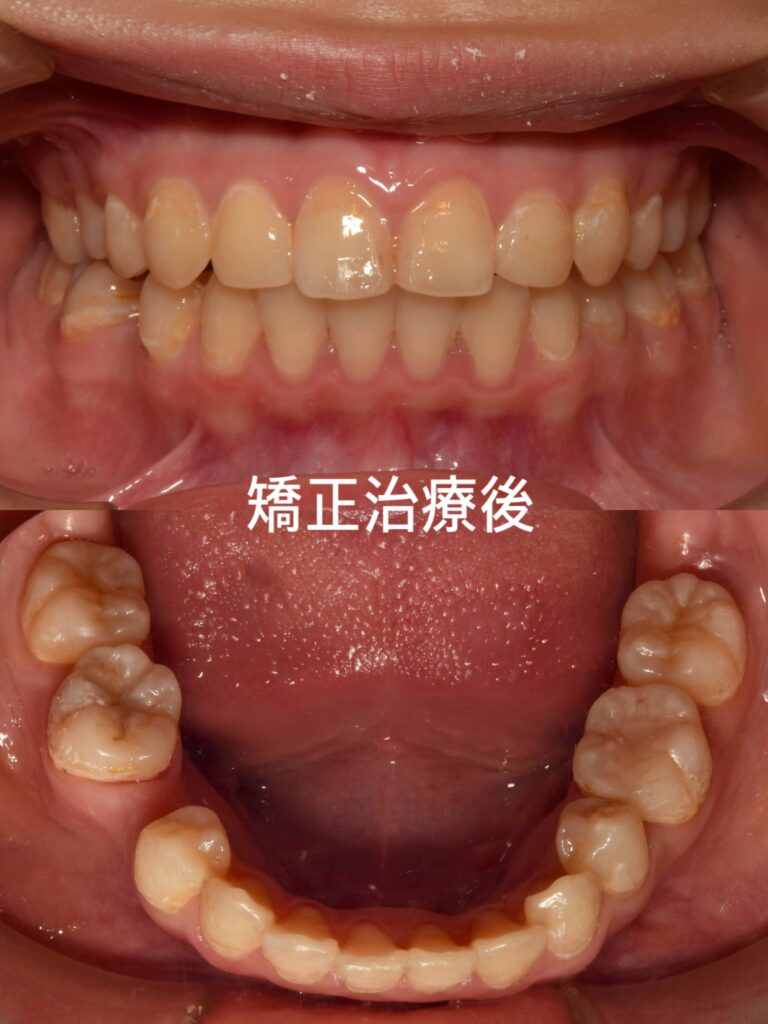 矯正治療後の噛み合わせや歯列の状態を考慮し、長期的な安定性を重視した結果、患者様と相談しブリッジによる補綴治療を行うこととなりました。
